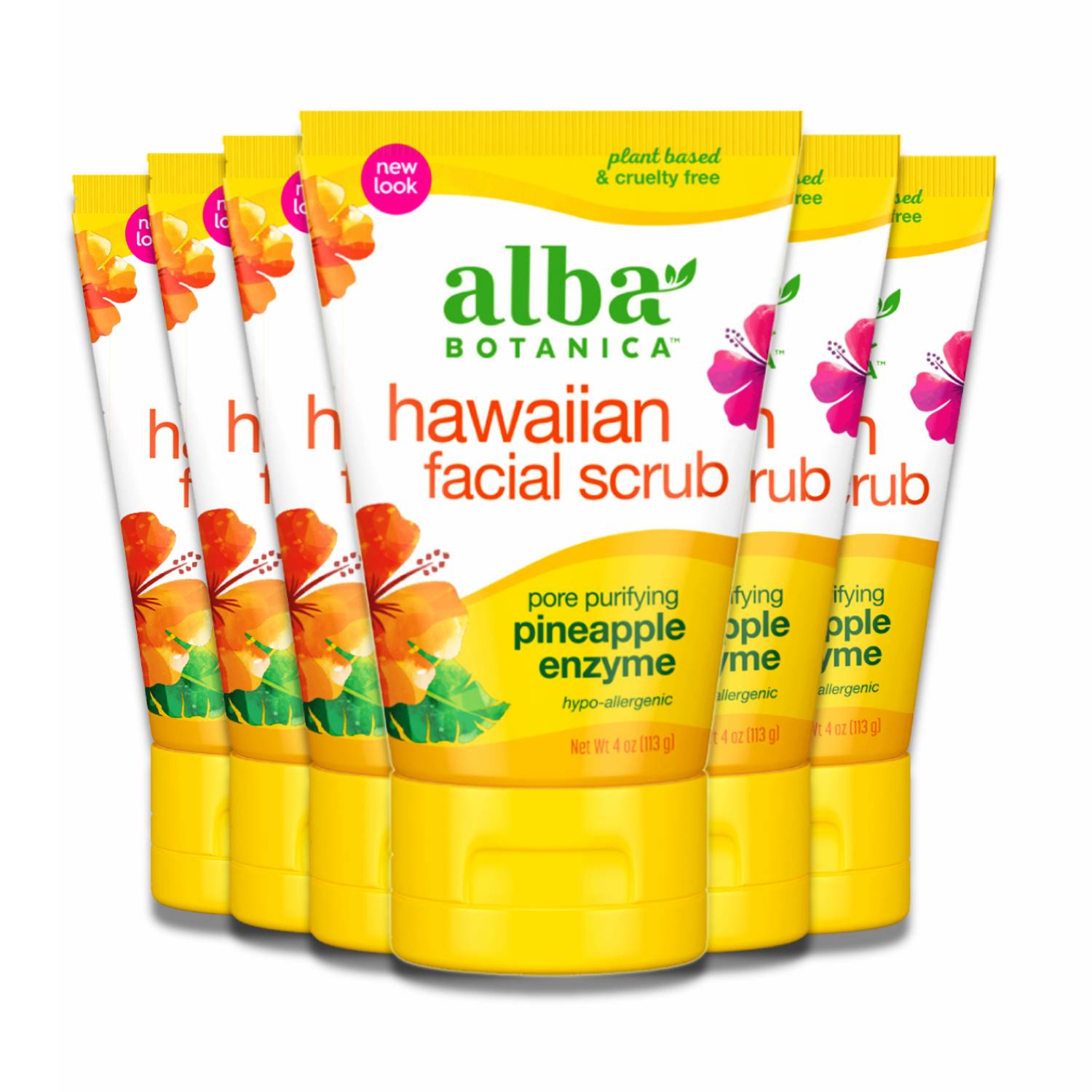 Introducing Alba Botanica Hawaiian Facial Scrub, Pore Purifying Pineapple Enzyme - 6 Packs. This pore purifying scrub is infused with pineapple enzyme to gently exfoliate and refine your skin. Elevate your skincare routine with Alba Botanica Hawaiian Facial Scrub today!