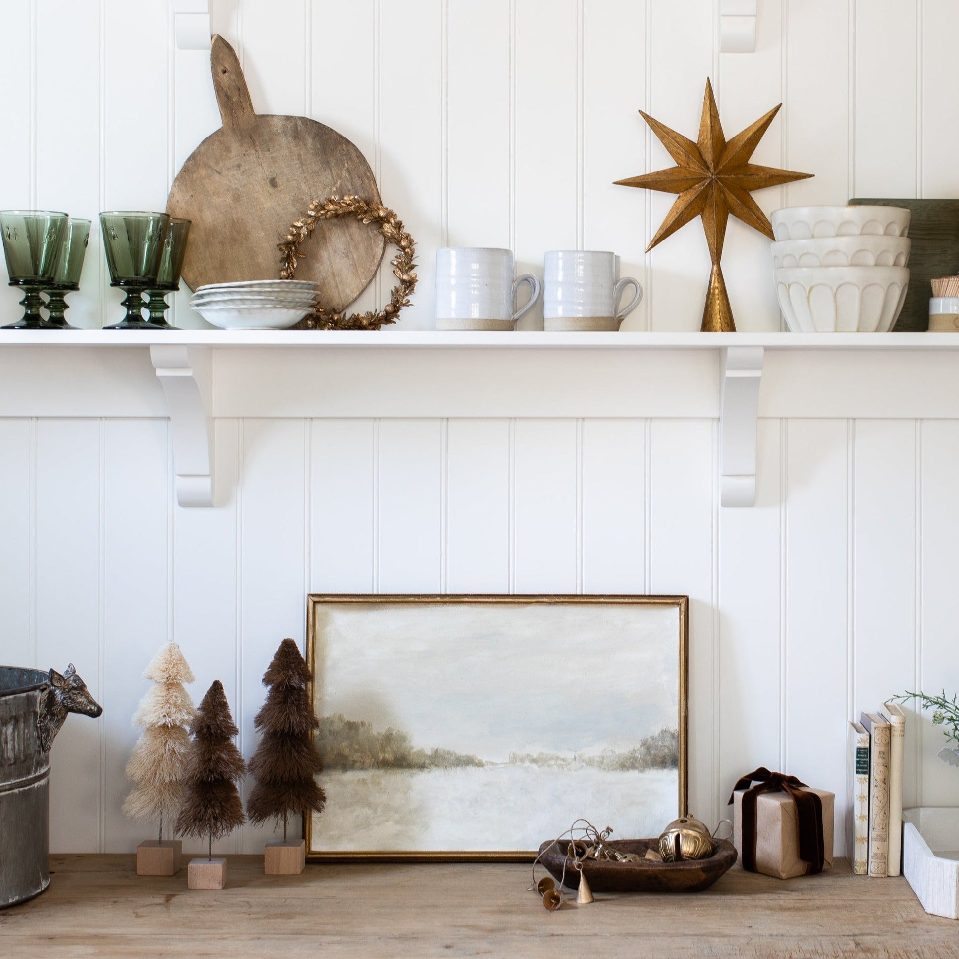 Winterscape depicts a beautifully soothing fresh snowfall across a field, detailed in a soft pallet that adds to the subdued nature of the piece. Inspired by the beauty of winter, this artwork acts as a perfect addition to your Holiday décor or as a standalone piece to be enjoyed year round.